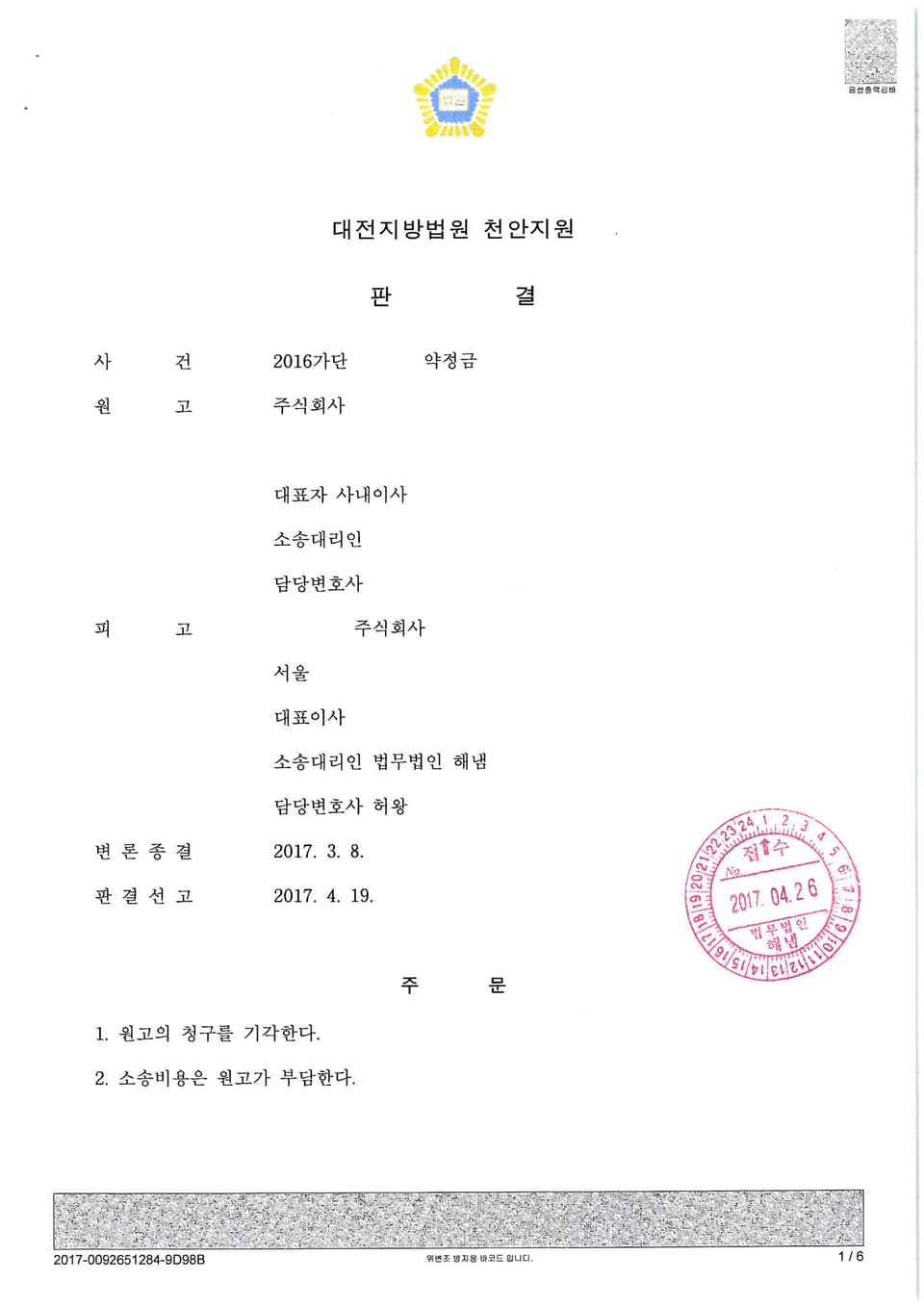 법률업무2017-05-292분[승소] 동일 상호 사용 금지 소송