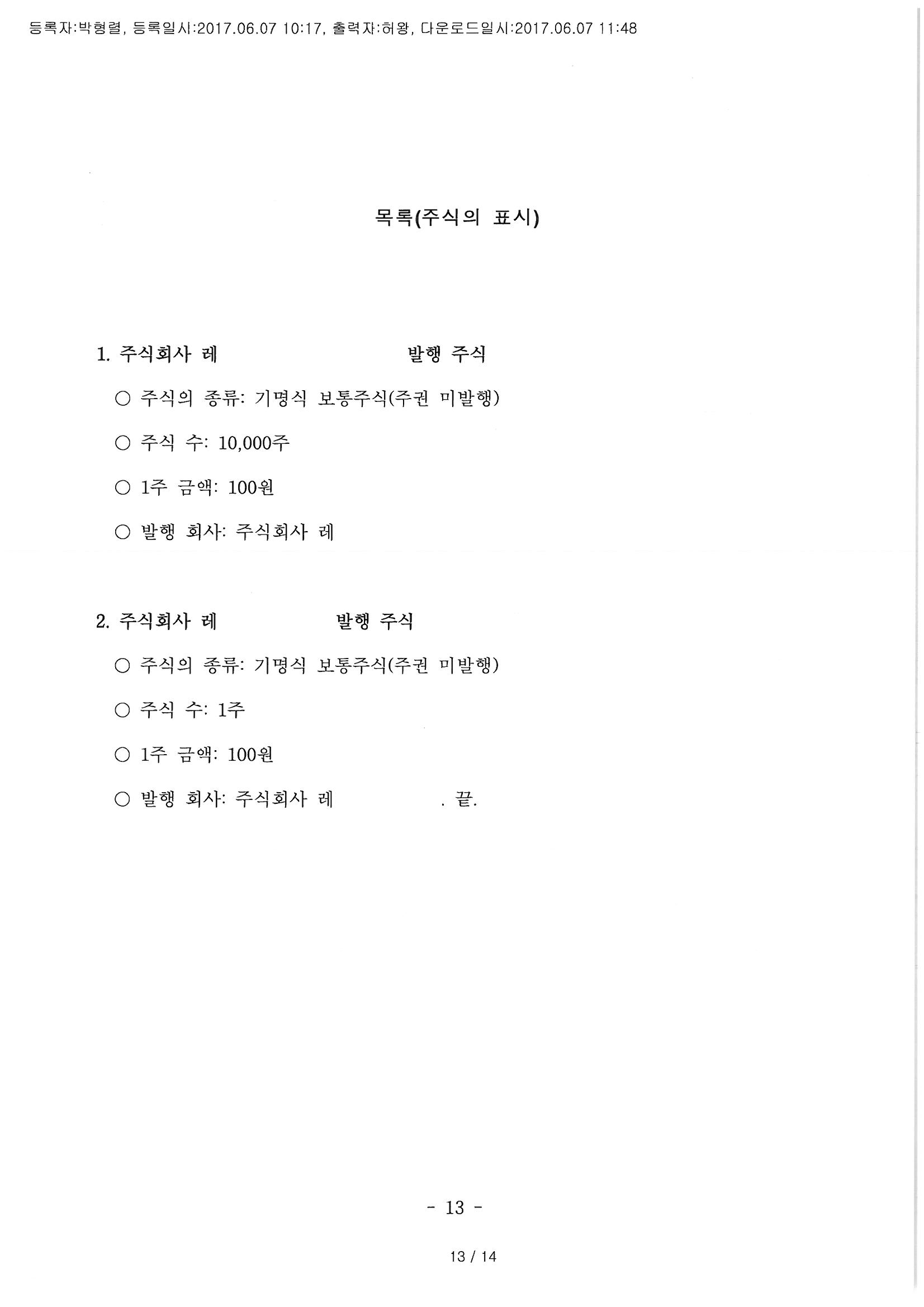 회사를 차릴 때에는 주식 수, 자본금과 그 소유 부분을 잘 정하여